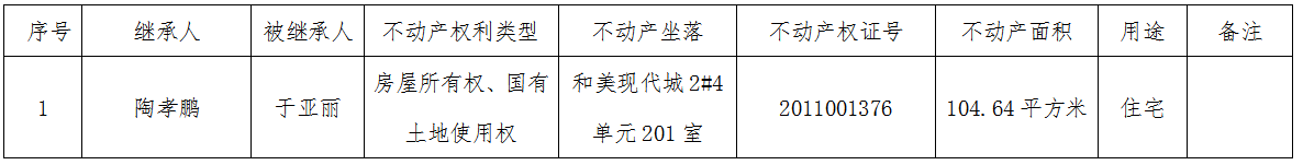 经初步审定,我机构拟对下列不动产权利予以继承登记,根据《中华人民共和国民法典》第一百二十四条和《不动产登记暂行条例实施细则》第十七条的规定,现予公告。如有异议,请自本公示之日起二十个工作日内( 2025年11月21日之前)持异议书面材料到本登记机构办公场所提出异议,并提供有关材料。逾期无人提出异议,本登记机构将予以登记。