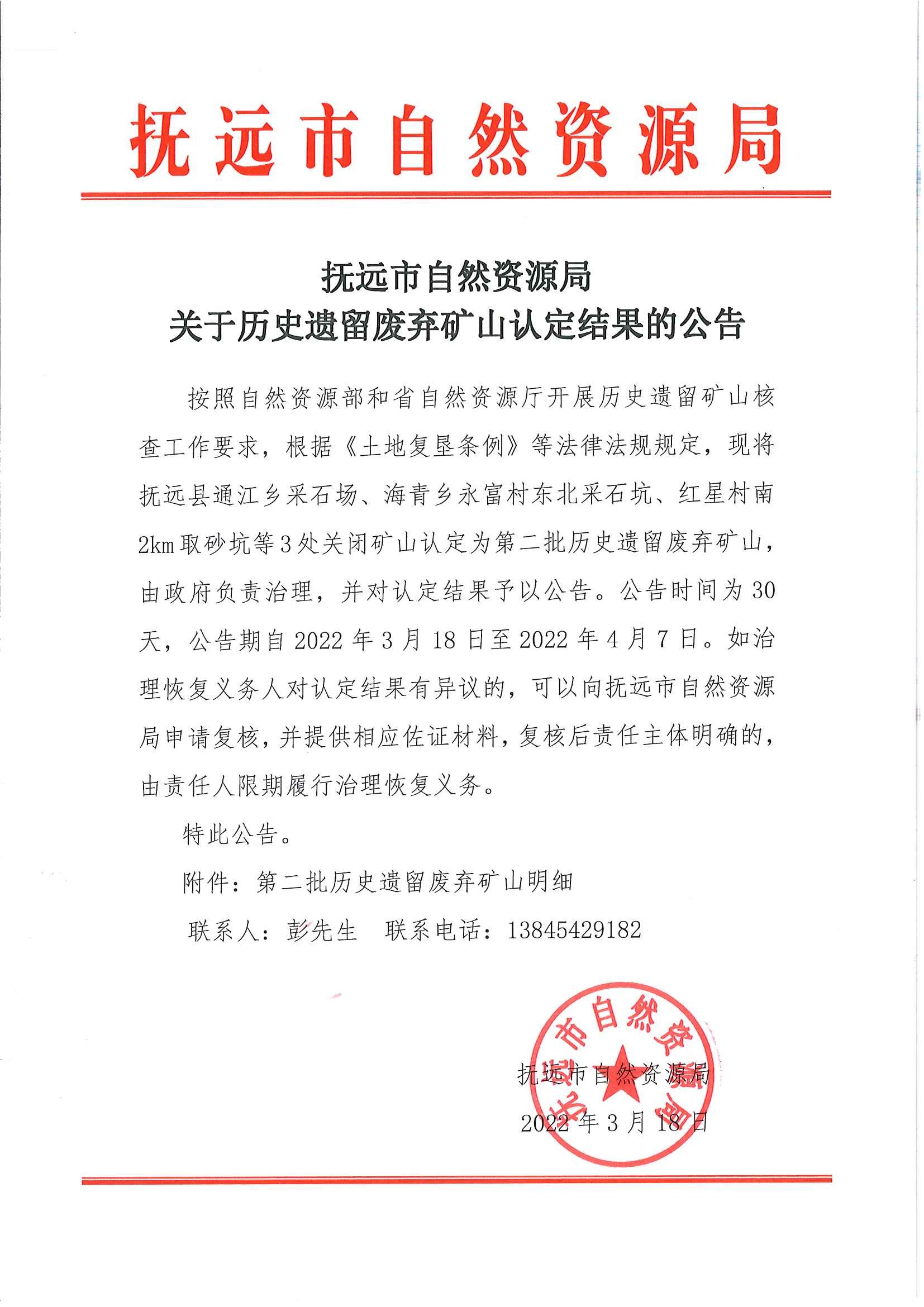 抚远市自然资源局关于历史遗留废弃矿山认定结果的公告