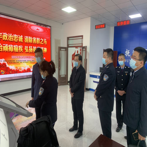 4月13日下午省第四指导组综合组组长付凯一行在市委政法委书记刘善友同志的陪同下,来到抚远市司法局检查指导队伍教育整顿工作开展情况。