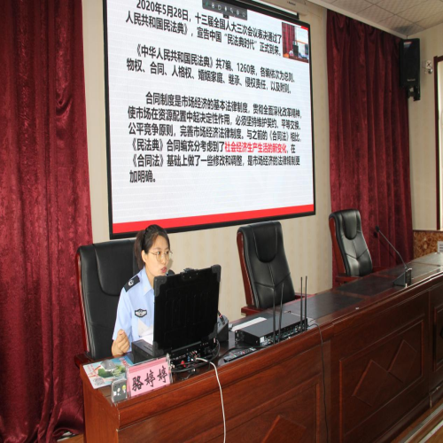 在培训中,抚远市司法局普法志愿者骆婷婷为大家讲解《中华人民共和国民法典》,骆婷婷同志运用通俗易懂的语言、鲜活生动的案例和现场提问互动的方式对《民法典》的颁布和施行、合同编十个亮点、企业在订立合同时应当注意的问题三个方面进行讲授,基层干部学习积极认真,现场气氛热烈活跃,达到预期效果。基层党组织书记纷纷表示要把此次学到的知识运用到实际工作中去,提高解决实际问题的能力。