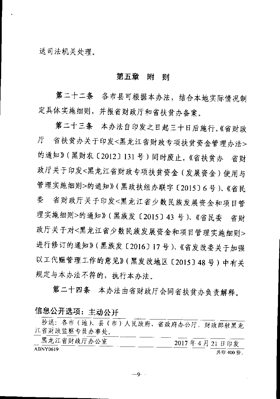 黑龙江省财政厅等五部门关于印发《黑龙江省财政专项扶贫资金管理办法》的通知