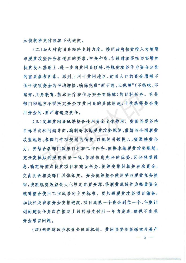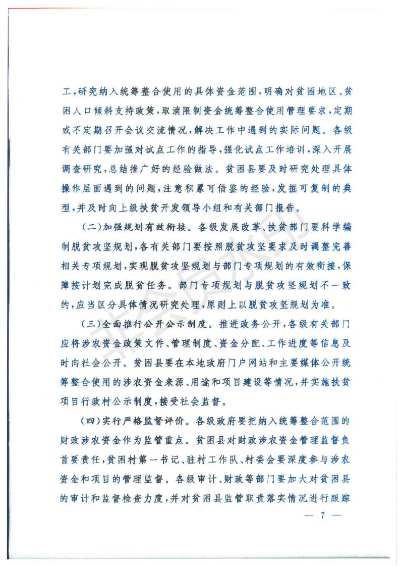 国务院办公厅关于支持贫困县开展统筹整合使用财政涉农资金试点的意见