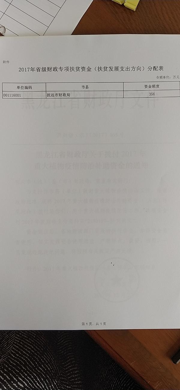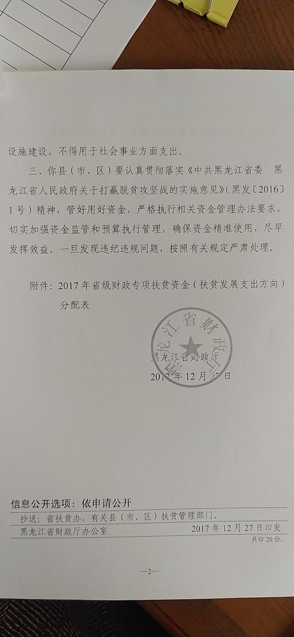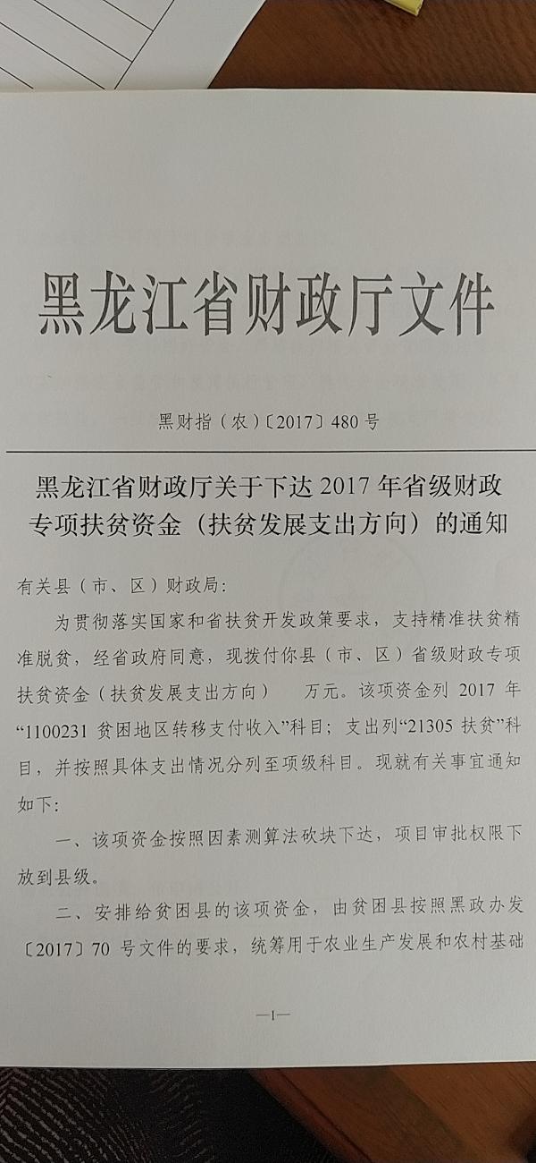 黑龙江省财政厅关于下达2017年省级财政专项扶贫资金(扶贫发展支出方向)的通知