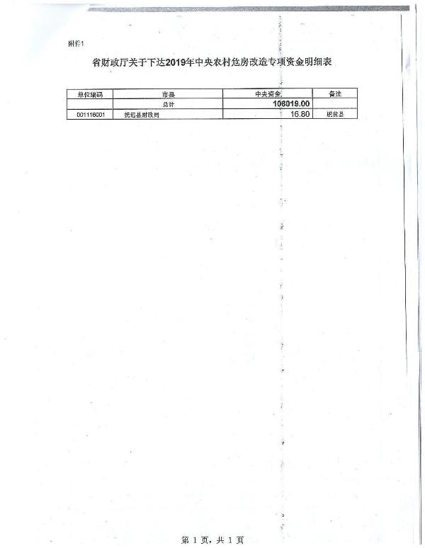 行业主管部门管理的扶贫资金(黑龙江省财政厅关于下达中央危房改选专项资金的通知(黑财指(建)[2019]197号))