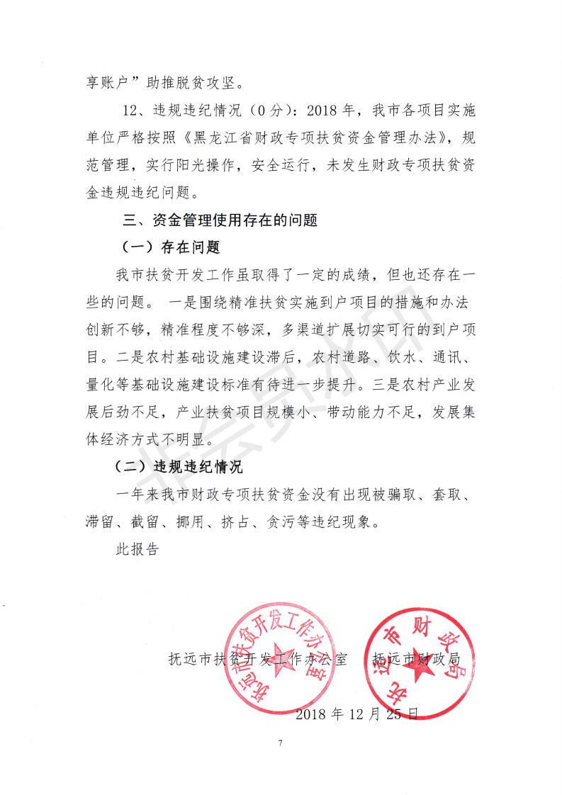 抚远市2018年度财政专项扶贫资金绩效评价自评报告